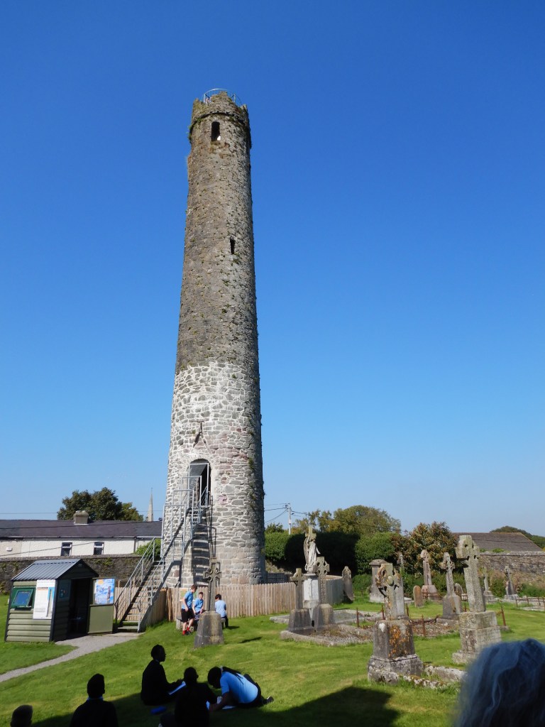 Well, we’re not in Dublin anymore. Since I’m so late writing this, we’ve seen three or four or five castles, starting with Drimmagh castle, a 13th century Norman castle still in Dublin, I believe. Actually, quite interesting and our guide was lovely. Then we traveled and traveled. We’re in a Mercedes small bus, basically big enough for all of us to have our own row. In Kildare, we went to St. Brigid’s Cathedral, which is on the site of the Celtic Christian abbey founded by her in the 5th century. Beautiful and interesting, but the story of Brigit to Brigid is the story of Catholicism taking over the Goddess — I have a particular dislike of St. Patrick, because his story is the story of the church destroying the Goddess (his driving the snakes out of Ireland). After a fabulous lunch of myriad Irish dishes, we drove to Kilronan castle where we stayed overnight. Google it — the height of luxury, just yummy; gorgeous grounds, beautiful rooms, great dinner. I sure wish I had booked a spa treatment!