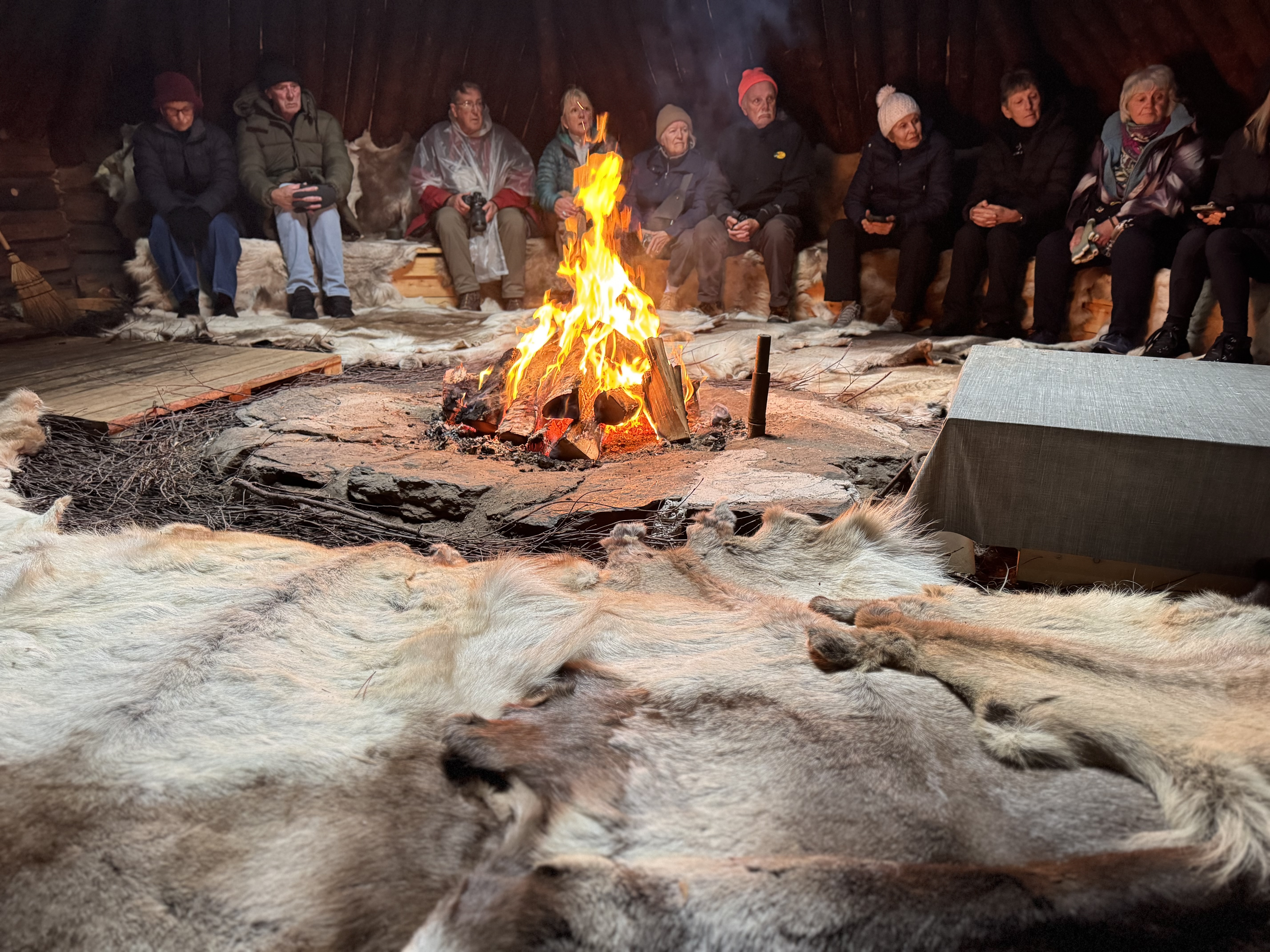 Today we went to the arctic circle, jumped, well hopped, over a bit of red rope and got our certificates. We did see a small reindeer group on the side of the road going and I later saw a young buck on our side of the bus. Then we went to some town, the name of which escapes me, to a really good museum about the Sampi (another spelling) — they did a really great job, but too many explanations had other languages, but not English. Lunch in the museum cafe was excellent. Then we came back and I wrote this down. Oh, and we saw more reindeer on the way back. I really want a reindeer hide, but, alas, they are heavy. Maybe I’ll figure out a solution — or maybe not.