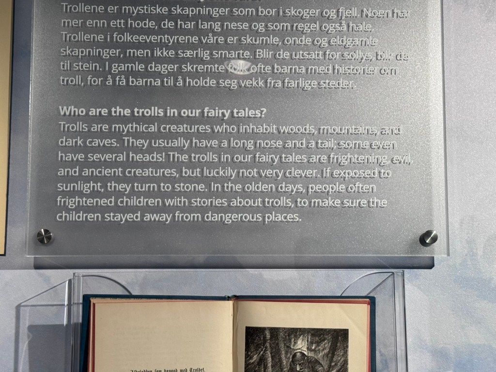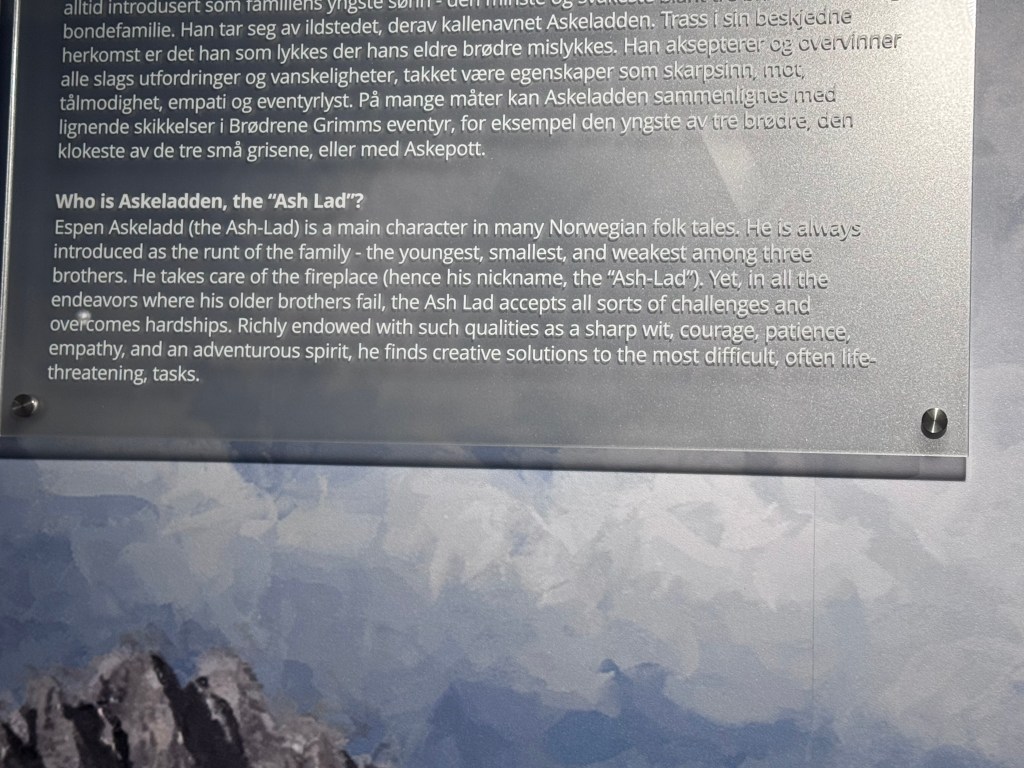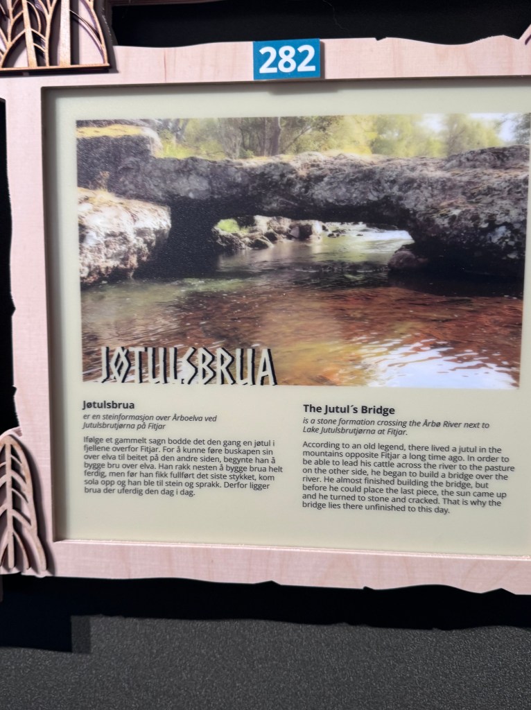 Oh, but the hulders. They sing like Loralei, enticing people who are never seen again. We actually saw a hulder on the train trip to Voss — first the beautiful singing and then the hulder dancing behind the boulders, long blonde hair and red cape streaming in the breeze, with the haunting music enthalling us. We could not look away. Luckily, the train kept on and no one tried to jump off. In the troll musuem, one story has it that the hulders are the children of Lilith — if you don’t know the ancient story of Lilith, get my book, Cruisin’ Passion Boulevard (on Amazon) and read A Hell of a Woman (shameless plug, I know). But here in the north, the tale is different, much influenced by christianity so that her children were hulders and very evil — they had not been evil in the earlier northern stories. Interesting, huh?