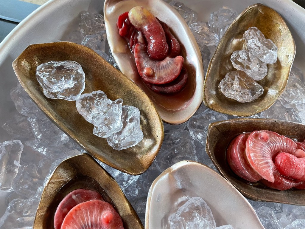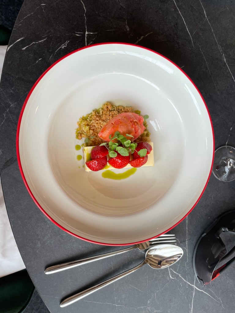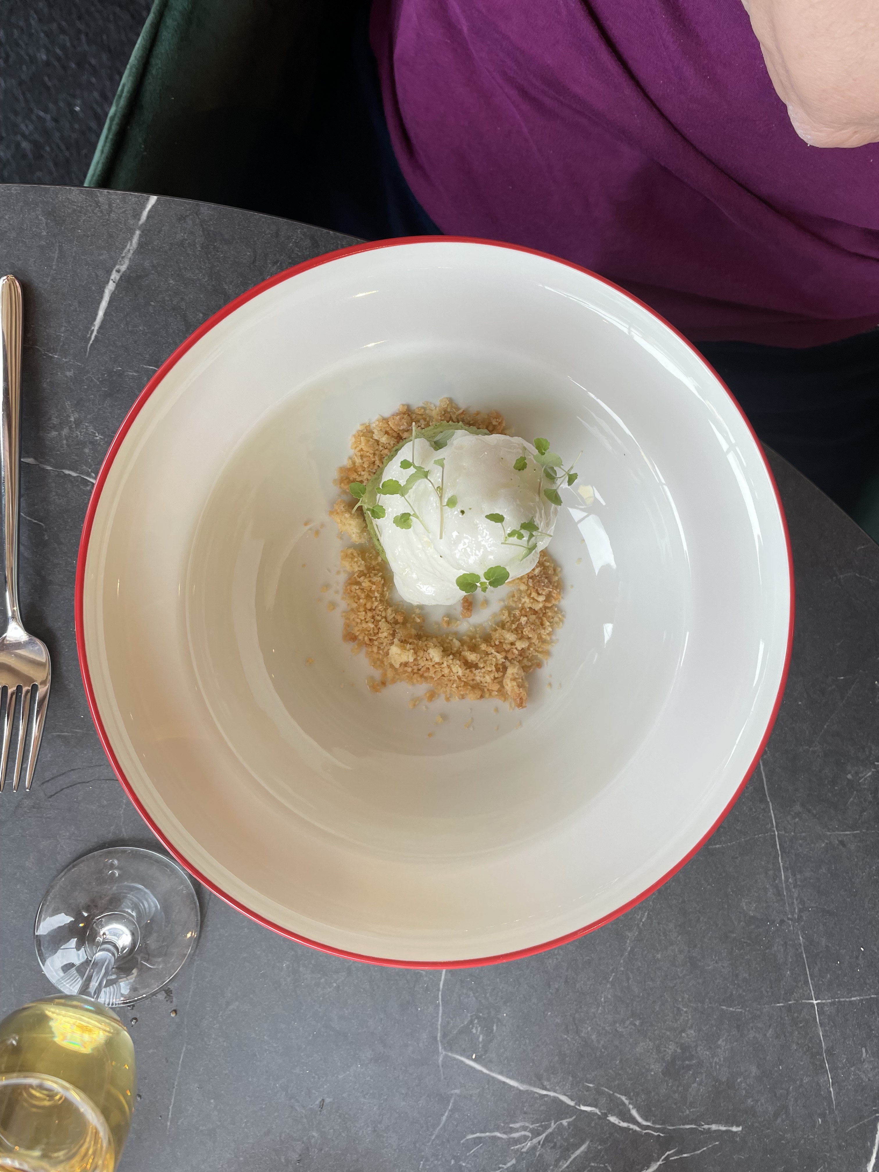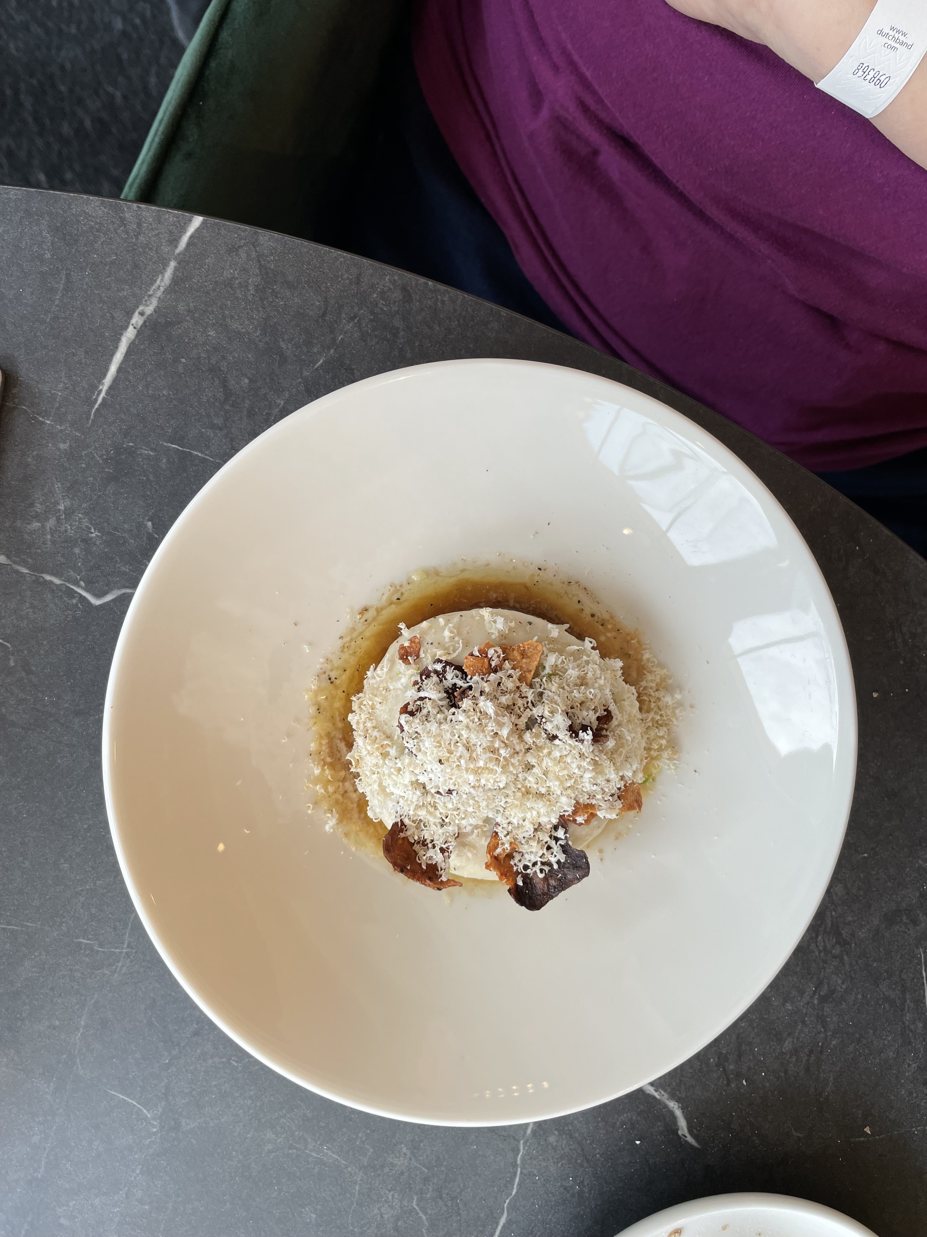 Oh, but we got to the TWA Hotel, got to our room, rested a bit then went to dinner. Chris had encouraged a cocktail, so I had my usual. I had perhaps the worst G&T in my memory (well, no, I just remembered that Spanish gin and the Japanese gin we had at our gin tasting party — gin made from sake: so very wrong!) — it was called Dorothy Parker gin and I don’t know whether it was the gin or the tonic they used (need to ask what that is), but it tasted like drinking the watered out dregs of an old, perhaps from the 50s, perfume bottle, maybe from the suitcase of a TWA stewardess who was hoping to get lucky, meet a rich man and live in a mansion, be able to afford better perfume, but, alas, that never happened and she worked until the mandatory retirement age for stewardesses. Whatever happened to her, I wonder — I heard that she had inherited her girlhood house when her mother died, but no one knew if she sold it and bought a pre-war apartment in NYC or went back home and played canasta every week with the girls. Maybe she got a job at the TWA Hotel, Paris cafe hostess or front desk, she did have talents after all if you don’t count her taste in perfume. Oh, god, do you think she got married after all and when her son decided to start a gin distillery. . . .