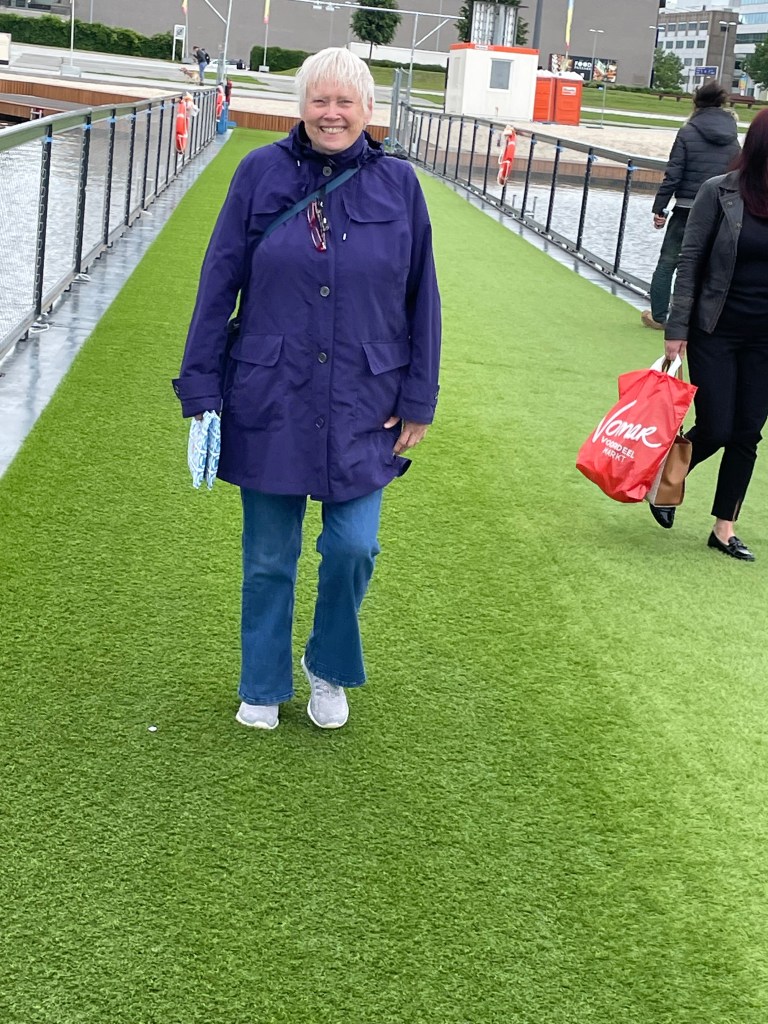 We flew from Amsterdam yesterday on KLM — when you are flying overseas, think of them, it is so nice flying with them, the flight attendants are so very nice — why, they even appear to like us customers! — and it’s like international travel used to be, where they feed you like every two hours. This was a different plane than the one I took from Amsterdam the last time I was there, after the Rhine cruise I took with Noekie — that time, don’t know what kind of plane it was but economy plus looked like our domestic business class — that was a cushy trip! But, while not as plush, it still was a lovely flight and we got in earlier than we would have on Icelandair. Not that it counted for anything because we got a late start, didn’t make up the time apparently and when we got to JFK, there was no gate for us — we had to ride around the airport for about a half hour until one was available.