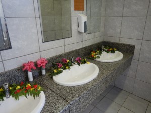 Here’s a random selection of pictures from our trip to Cape Town and Namakwaland, and whatever else I find. A couple will be of fantastic bathrooms we found in SA. The first, I think, is the floral display around the sinks at the gas station on our way to CT. The very colorful ones are from the Zeitz museum of contemporary African art.  Every time we want to post pictures, it’s like tabla rasa (or however you spell it).  So let’s see.